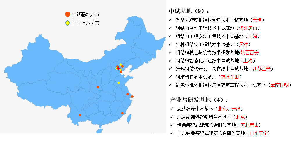 装配式建筑产业基地与国内知名生产制造企业合作,先后建立了9个中试基地和4家生产研发基地。